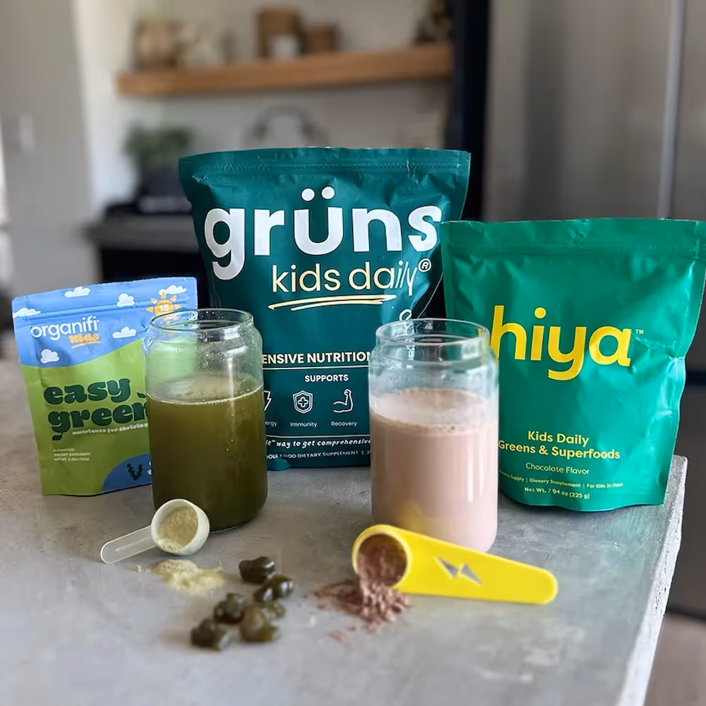 Instead, we prefer the powder form of Hiya and Organifi kids' greens supplements. Both brands are easily dissolvable in water or milk, or can be added to smoothies or popsicles, if you’re feeling adventurous! These products are also safe for kids aged 2+, unlike gummies.4